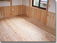 厚さ15mmのひのきの床。無塗装で仕上げますので裸足で触れた瞬間、生きた木の温もりを感じます。部屋中が心地良い香りで満たされます。